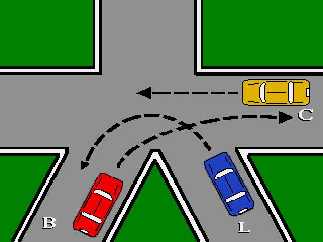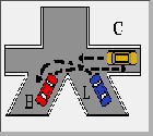 - B passa per ultimo perche` ha la destra impegnata